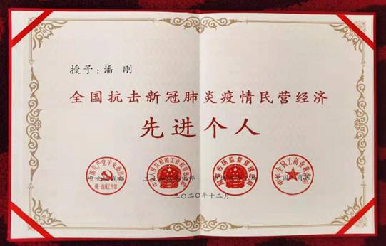 伊利集團董事長潘剛榮獲“全國抗擊新冠肺炎疫情民營經濟先進個人”