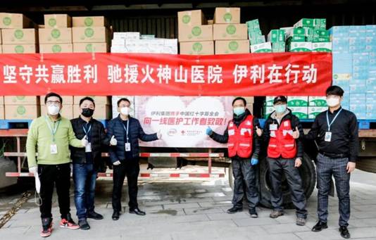在武漢市政府決定建設武漢蔡甸火神山醫院后,伊利第一個將牛奶等營養物資送進“火神山”,又劃撥1000萬元專項資金來支援建設。伊利還發動多方力量籌集3萬多個牛奶箱提手,送往全國26家醫院及支援湖北醫療隊,解決醫護人員長期戴口罩時“勒耳朵”的問題。