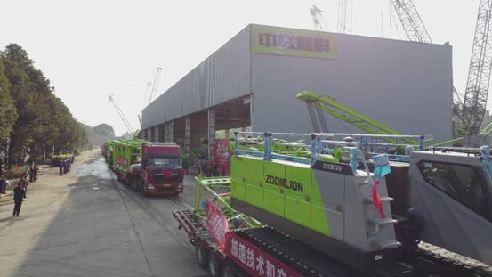 △2月18日,中聯重科開門紅當天,十余臺履帶起重機明星產品起運發往全球