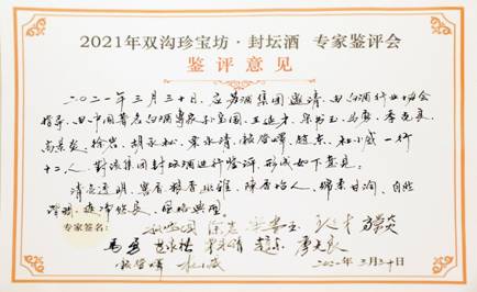 據(jù)了解,雙溝珍寶坊封壇酒(2021版)釀在洪澤湖畔、淮河之濱,凝聚濕地精華,被稱為濕地珍寶、文化瑰寶、匠心至寶。此前在推介會上,雙溝珍寶坊封壇酒(2021版)首次亮相就收獲了收藏愛好者、經(jīng)銷商等嘉賓的稱贊。隨后,在專家品鑒評會上,雙溝珍寶坊封壇酒(2021版)更是受到了行業(yè)領(lǐng)導、白酒專家的好評,并給出了一致評價:清亮透明,窖香、糧香幽雅,陳香怡人,綿柔甘潤,自然諧調(diào),爽凈悠長,風格典型。專家們還揮毫題寫“濕地雙溝 名酒珍寶”“濕地濃香 五味珍寶”等書法作品,贊譽雙溝酒的優(yōu)異品質(zhì)。大家認為,這款封壇酒必將會受到消費者的追捧和認可。