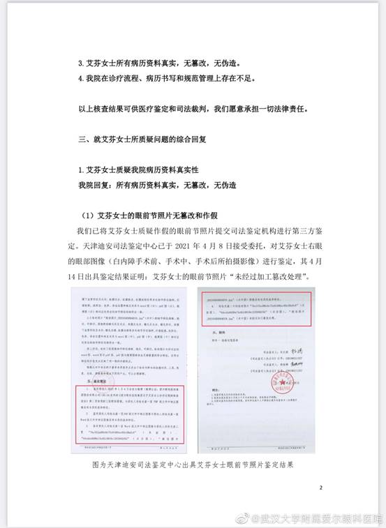 愛爾提供第三方鑒定結果:患者艾芬眼部圖片未經加工篡改