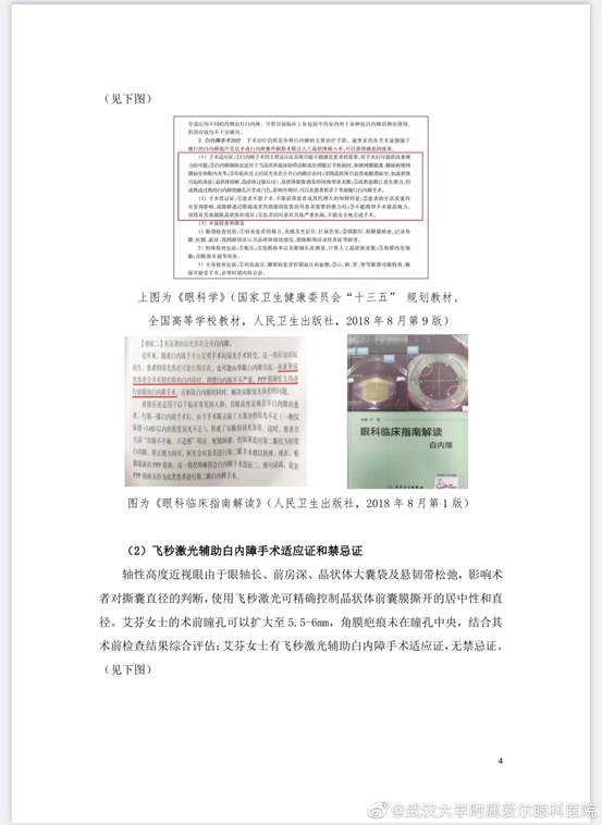 另外,此份通告對患者艾芬及社會關切的主要問題進行了回復,并以眼科行業著作《眼科學》、《眼科臨床指南解讀》、《屈光性白內障手術學》中的內容加以佐證。