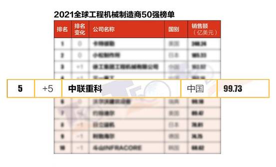 △中聯(lián)重科榮登2021全球工程機(jī)械制造商50強(qiáng)榜單第5名