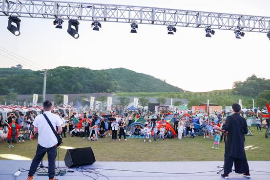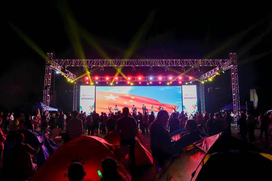 夜幕降臨前,音樂節最核心的一臺文藝演出拉開序幕,現場樂隊迅速點燃了在場所有人的熱情。除了年輕人喜愛的流行、搖滾、民謠、街舞,還有小提琴、二胡、拉丁舞,歌曲、舞蹈形式多樣,風格多變,流行和懷舊經典結合,尤其是最后合唱的《我愛你中國》,將音樂節晚會推向高潮,所有在場的人們一起揮舞著手中的銀光棒,用歌聲表達我們此時此刻對祖國的深深愛意!