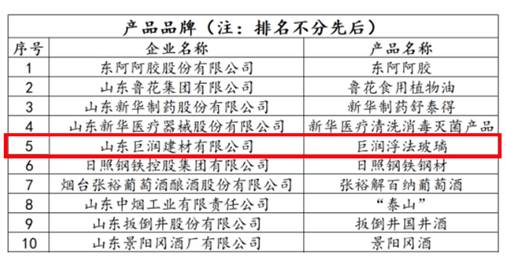 5月17日,由山東省品牌建設促進會、大眾報業集團、山東廣播電視臺聯合組織的“品牌強省 創領未來—第二屆‘山東名片’品牌影響力TOP榜評選結果公示,中融新大集團巨潤建材公司浮法玻璃成功入選產品品牌類榜單,這是中融新大集團連續第二年獲此殊榮。
