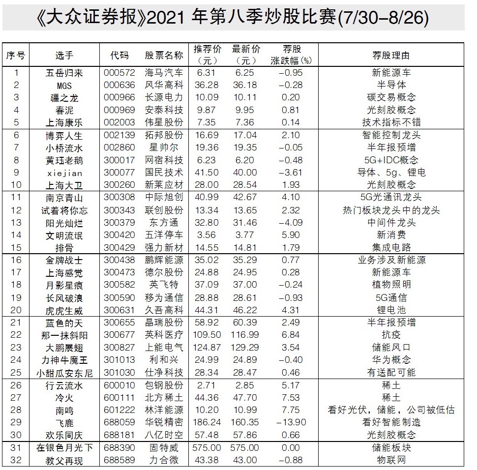 突如其來的疫情讓南京人措手不及,但每月一次的 《大眾證券報》讀者俱樂部炒股大賽還是正常進行,比賽時間截至8月26日。報名當日,網友“南鳴”以10.20元/股推薦的林洋能源,以薦股漲幅7.75%暫列第一。