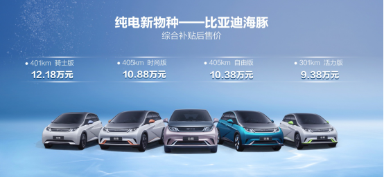 “十萬級純電精品”比亞迪海豚萌動上市 四款車型售價9.38萬元-12.18萬元