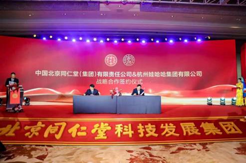 中國北京同仁堂(集團)有限責任公司與杭州娃哈哈集團有限公司簽署戰略合作協議。