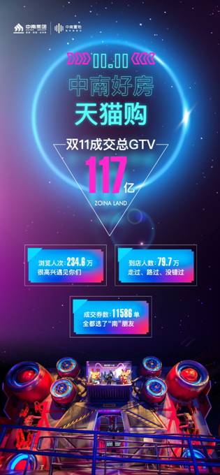 去年,為了應(yīng)對疫情影響,中南建設(shè)探索提出“數(shù)字化全域營銷”的概念,聯(lián)動天貓好房,利用“雙十一”、“雙十二”兩大網(wǎng)購狂歡節(jié)點持續(xù)引爆線上營銷。尤其是去年“雙十一”期間,中南建設(shè)推出“中南好房天貓購”活動,利用明星帶貨、總裁直播以及特價房等創(chuàng)新方式和優(yōu)惠活動吸引購房者,最終創(chuàng)下了瀏覽人次234.6萬,到店人數(shù)79.7萬,成交優(yōu)惠券11586單以及線上成交總GTV117億元的成績。