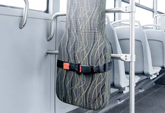 另外,宇通無障礙公交車還在后門處設(shè)計了一塊特殊區(qū)域,這里的兩個座椅平時是折疊起來的,如果乘客有需要,壓下來就能坐下。而當(dāng)有殘疾人上車時,這里就能供殘疾人停放輪椅,還有安全帶可以用來固定,而且輪椅背對的是一塊軟擋,即使是在遇到一些緊急剎車的情況下,這塊軟擋板的緩沖效果,可以在很大程度上避免這個位置的乘客受到傷害。