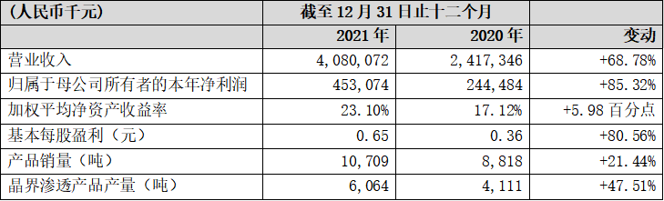 報告期內,公司營業收入達人民幣40.80億元,同比增長68.78%;歸屬于母公司所有者的凈利潤達人民幣4.53億元,同比增長85.32%;加權平均凈資產收益率達23.10%,同比大幅提升5.98個百分點;每股基本及攤薄盈利均為人民幣0.65元,同比大幅增長80.56%。