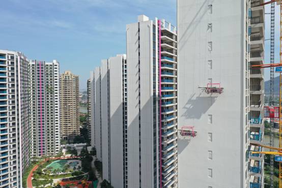 (施工中的卷揚式外墻乳膠漆噴涂機(jī)器人)