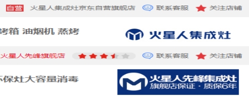 經(jīng)仔細(xì)比對,該店鋪LOGO與火星人集成灶京東自營旗艦店的白底藍(lán)字LOGO極為神似,特別是內(nèi)嵌M字母的圓形圖標(biāo),僅在顏色和個別細(xì)節(jié)上稍有出入。普通消費(fèi)者若不仔細(xì)辨認(rèn),確實(shí)很容易誤認(rèn)為這就是一家專賣火星人集成灶的店鋪。