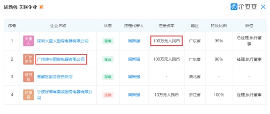 值得注意的是,廣州帥豐廚房電器有限公司與上述企業(yè)均無任何關(guān)聯(lián),這是否意味著周新強(qiáng)名下的這兩家企業(yè)其實(shí)是專業(yè)傍各大品牌并進(jìn)行“擦邊產(chǎn)品”銷售的公司?