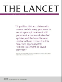 圖3:2010年非洲多中心兒童重癥瘧疾治療試驗(yàn)(AQUAMAT)結(jié)果在《柳葉刀》發(fā)表