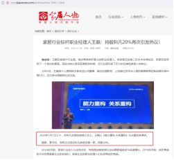 圖一:家居人物網報道2020年春節后王飚持有科凡家居20%股份