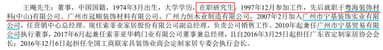對于王飚學歷、任職經歷,科凡家居與寧基股份招股書為何不一致?科凡家居招股書為何未披露王飚的研究生學歷,王飚此前持續七年履歷中的在職研究生學歷是否真實?寧基股份IPO時,招股書中王飚在的簡歷為何缺失了早年在廣東省體改委經濟快報社、廣州賽立信市場研究有限公司的工作經歷,有無隱瞞?王飚2020年持有科凡家居20%股份的數據是否真實,有無股權代持行為未披露?