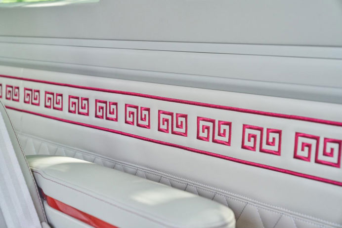 環顧車內,T7星宇版采用獨具民族特色的刺繡工藝與回形紋特征作為主體,將國風元素和車輛內飾融合,給車內營造出大氣靜謐的環境,讓乘坐者擁有尊貴感受。側圍的深紅色回形紋圖案環繞車身,作為中國傳統的吉祥圖案,蘊含吉祥、開拓之意,給人生生不息的民族文化氣息。