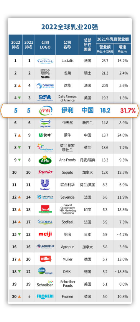 增速31.7%,全球第一!伊利蟬聯全球乳業五強,“一超多強”格局繼續強化