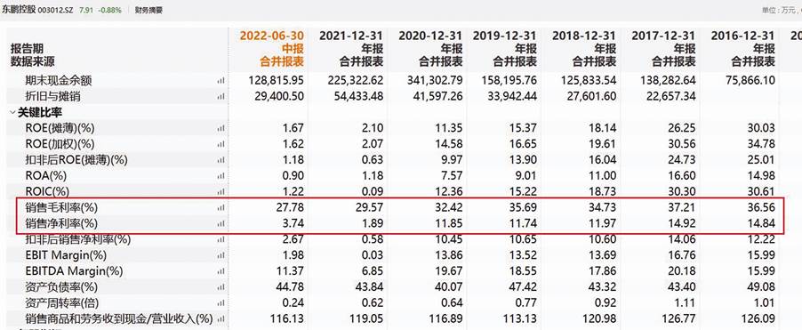 最新披露的2022年中報顯示,東鵬控股實現營業收入31.32億元,同比減少13.61%,凈利潤1.18億元,同比減少69.51%,扣非后凈利潤0.84億元,同比減少73.42%。短期公司受需求下滑及成本增加影響業績出現下滑。