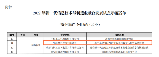 近日,工信部公示了2022年新一代信息技術與制造業融合發展試點示范項目名單,其中包括全國首批30個“數字領航”企業名單,中聯重科以基于工業互聯網的數字化領先優勢成功入選該名單,展現出龍頭企業領航行業轉型升級的實力與擔當。