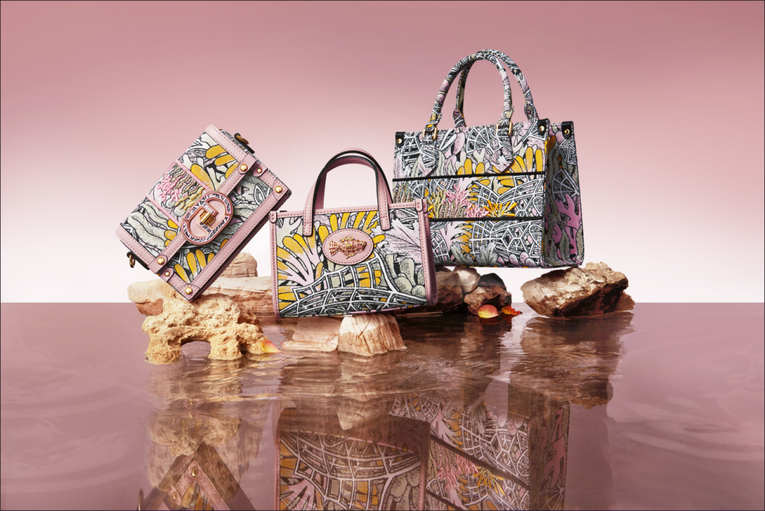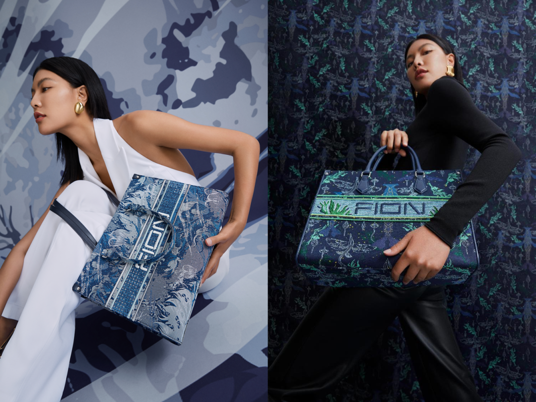 2022年,FION邀請中國臺灣藝術家張簡士揚多元共創,將國風意境的色彩注入手袋設計中,推出巧錦開物系列的又一力作——浮光魚影與敦煌瑤池。