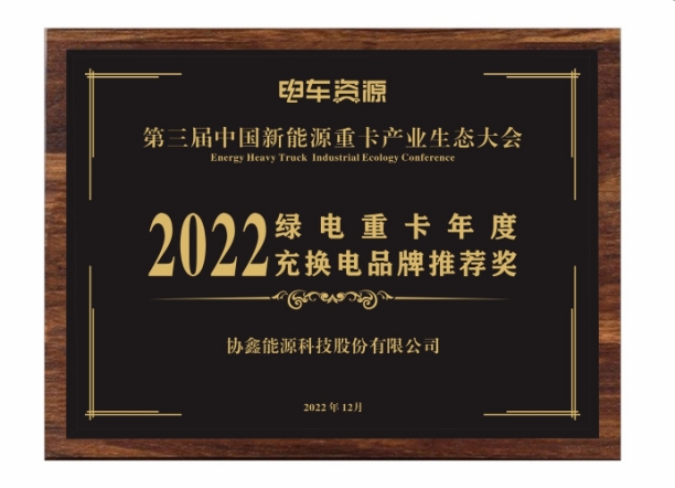 協鑫能科榮膺“2022綠電重卡年度充換電品牌推薦獎”