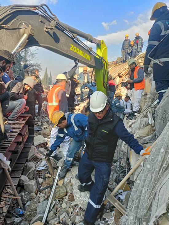 ▲中聯重科救援隊在土耳其地震災區現場救援