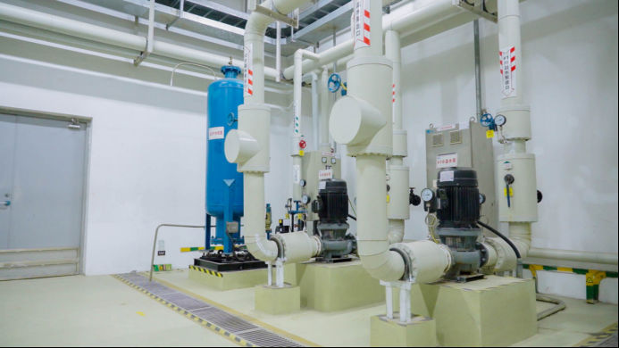 協鑫能源中心碳中和項目負責人,協鑫能科清潔能源公司副總裁牛曙斌介紹,“總部自供綠電能力超50%,建筑屋頂、車棚頂面,甚至湖面都得到了最大化利用。已鋪設鈣鈦礦組件及光伏總裝機容量超500千瓦,年發綠電約50萬千瓦時,相當于每年節約標煤超158噸,減排二氧化碳約416噸。400千瓦的天然氣分布式能源年發綠電40萬千瓦時。與此同時,湖底還埋著800根換熱管,可實現年節電360萬千瓦時,再加上200千瓦時智能調控的儲能系統及高效LED照明,建筑物整體節能效果超60%。”