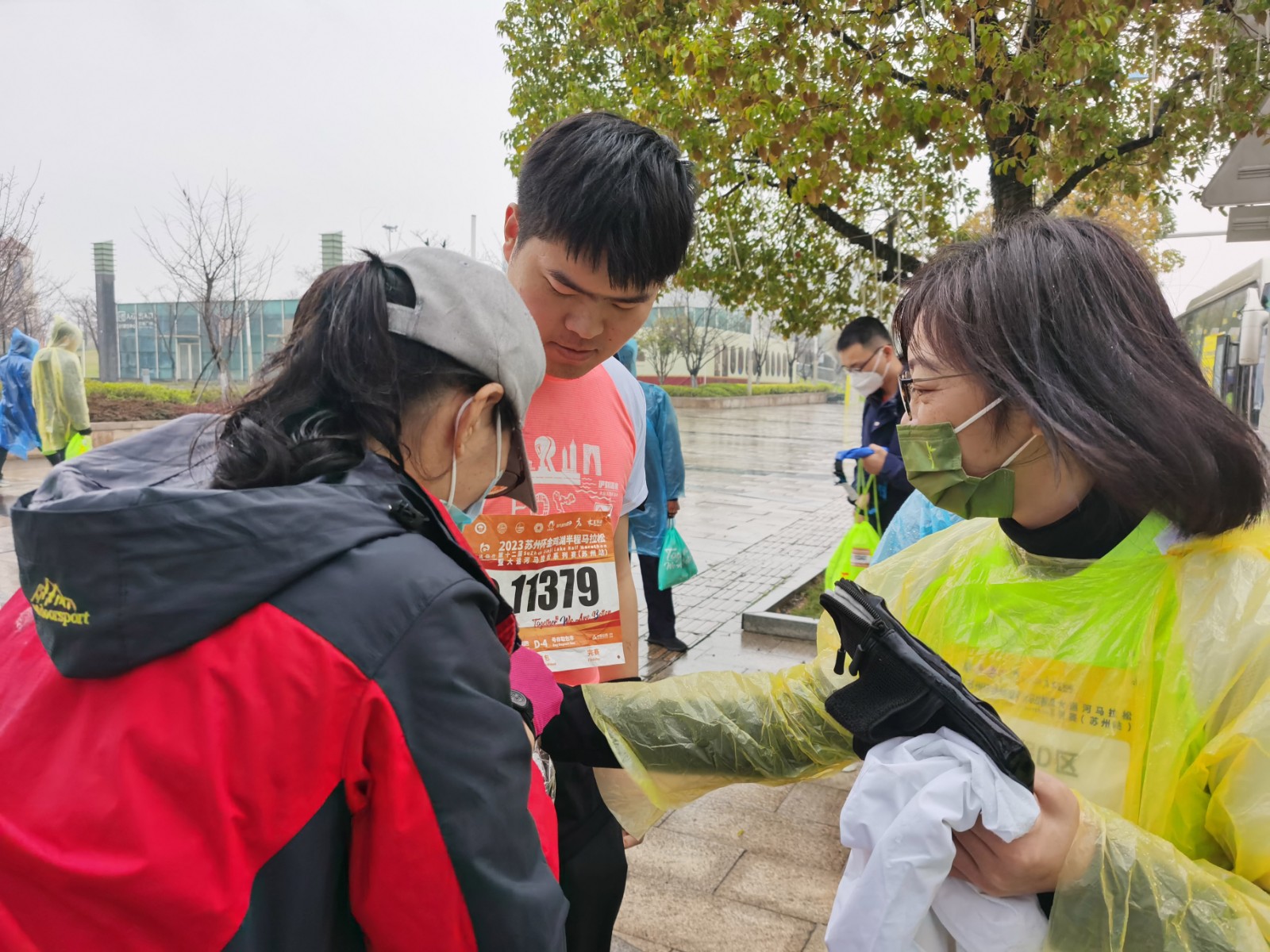 3月12日凌晨4:30,天空飄雨、大風(fēng)凜冽,溫度低至5℃,“伊心向陽(yáng)”蘇州伊利志愿服務(wù)隊(duì)早早來(lái)到工作區(qū)嚴(yán)陣以待。在選手存包時(shí),志愿者認(rèn)真核對(duì)信息、協(xié)助補(bǔ)充缺失信息、蓋章、計(jì)數(shù)、傳遞、按序擺放,整套動(dòng)作一氣呵成,堪稱專業(yè);隨后,幫助參賽選手穿雨衣,并為他們加油助威;取包時(shí)又提前引領(lǐng),高效維持取包秩序,用飽滿的熱情、優(yōu)質(zhì)的服務(wù)圓滿完成近400個(gè)包的存取工作。“伊心向陽(yáng)”蘇州伊利志愿服務(wù)隊(duì)的工作成效不僅得到了組委會(huì)、民企黨委的高度認(rèn)可,還收獲了參賽選手的贊許。一名選手表示,今年的存取包速度創(chuàng)往年之最,遠(yuǎn)遠(yuǎn)得就被志愿者熱情地招呼到指定地點(diǎn),節(jié)省了很多準(zhǔn)備時(shí)間,讓我們能更輕松暢快地奔赴“戰(zhàn)場(chǎng)”。