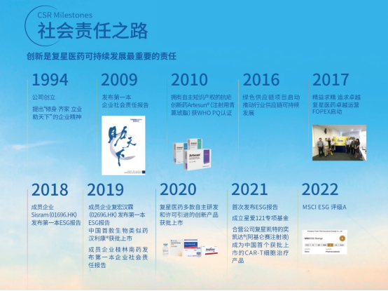 作為一家植根中國、創新驅動的全球化醫藥健康產業集團,復星醫藥始終積極推動ESG管理及信息披露,持續完善公司ESG體系,助力公司長期可持續發展。