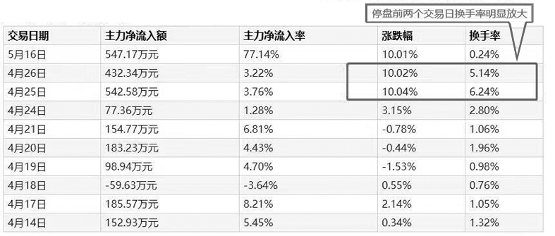 從換手率來看,4月21日、4月24日、4月25日,4月26日,公司股票換手率分別為1.06%、2.80%、6.24%、5.14%。不難看出,公司股票換手率在4月25日、4月26日明顯放大(資金流向情況詳見圖表,數據來源于Wind)。