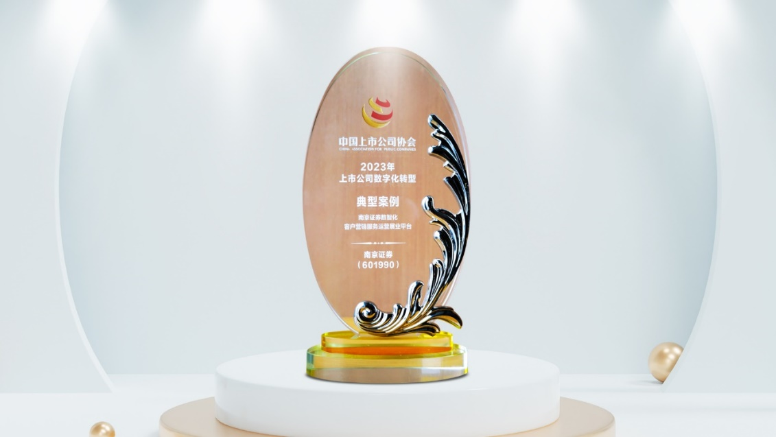 近日,在2023中國上市公司峰會上,中國上市公司協會發布《2023年上市公司數字化轉型典型案例》,南京證券“數智化客戶營銷服務運營展業平臺”在眾多案例中脫穎而出,被評選為“2023年上市公司數字化轉型典型案例”。