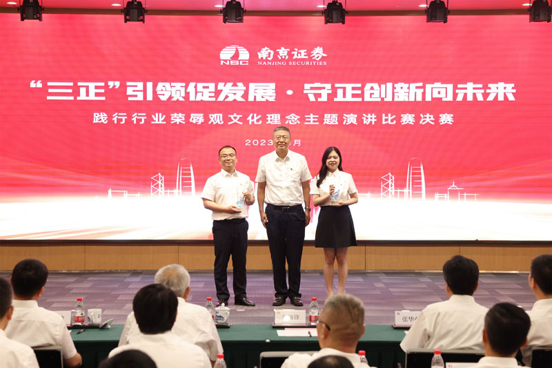 6月13日,南京證券在上市五周年之際,舉辦主題為“‘三正’引領促發(fā)展·守正創(chuàng)新向未來”的踐行證券行業(yè)榮辱觀主題演講比賽決賽,通過開展演講比賽活動,大力弘揚證券行業(yè)文化理念,引導員工踐行證券行業(yè)榮辱觀和公司特色企業(yè)文化。