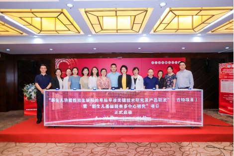 6月28日上午,國際新生兒篩查日“新生兒功能性出生缺陷的早篩早診關鍵技術研究及產品研發”(首特項目)暨“新生兒基因篩查多中心研究”項目啟動會在北京正式召開。該項目由國家兒童醫學中心、首都醫科大學附屬北京兒童醫院牽頭,聯合西北婦女兒童醫院、長治市婦幼保健院、保定市婦幼保健院、深圳市婦幼保健院、東莞市婦幼保健院、深圳市龍崗區婦幼保健院等全國6家婦幼醫療機構開展。貝瑞基因作為合作單位,為該項目的研發提供技術支持。