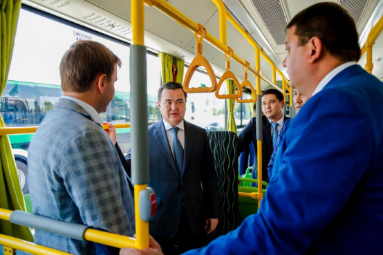 恰逢哈薩克斯坦第25個首都日到來,阿斯塔納城市街頭熱鬧非凡,車輛上線儀式吸引了大批民眾駐足觀禮,給節日增添了濃厚的喜慶氛圍。阿斯塔納市市長杰恩斯·哈斯姆別克一行視察了首批上線車輛,他對宇通新能源客車的產品品質贊不絕口,表示“宇通”是值得信賴的中國品牌。