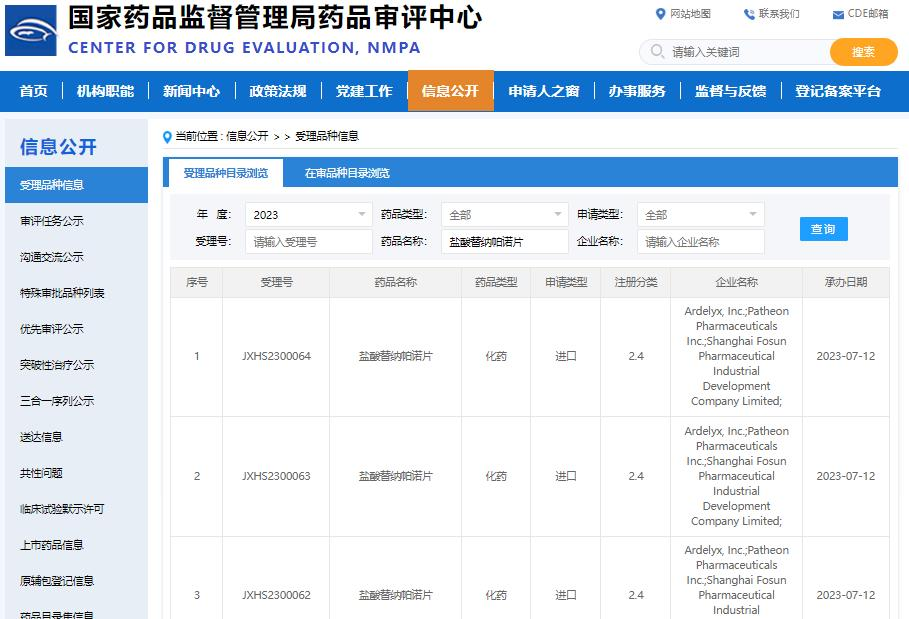 復星醫藥創新藥鹽酸替納帕諾片獲上市申請受理 用于治療慢性腎臟病血透患者高磷血癥