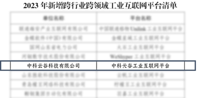 ▲中科云谷工業互聯網平臺入選國家級“雙跨”平臺