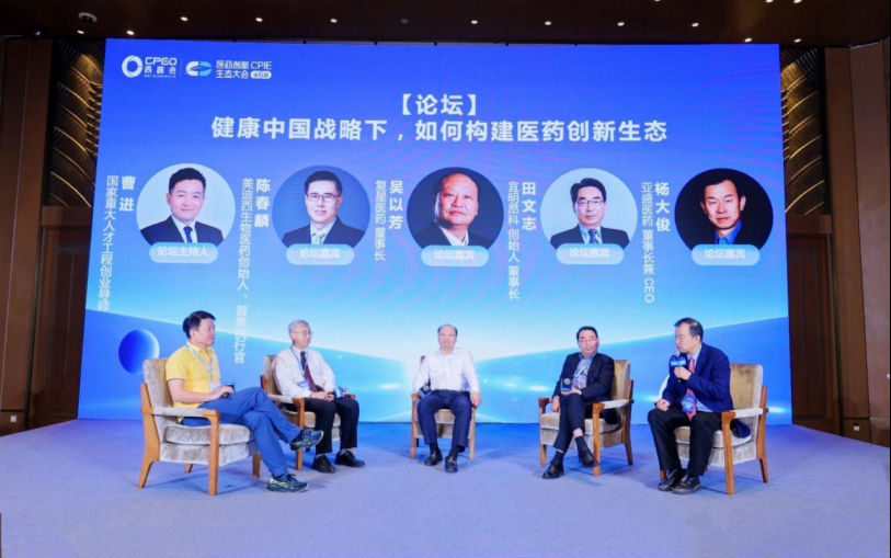 在8月10日舉行的2023西普會·醫藥創新生態大會中,復星醫藥董事長吳以芳,美迪西生物醫藥首席執行官陳春麟,宜明昂科創始人、董事長田文志,亞盛醫藥董事長兼CEO楊大俊,與主持人國家重大人才工程創業導師曹進,就“健康中國戰略下,如何構建醫藥創新生態”進行了巔峰對話。