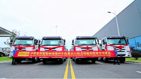 ▲中聯重科攪拌車批量出口沙特、印度尼西亞