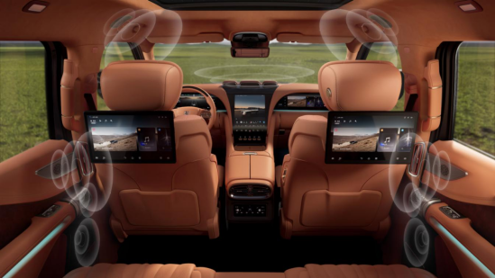 仰望U8豪華版的智能座艙,搭載了比亞迪與高通聯(lián)合定制的4nm 5G芯片,運算高速、兼容性強,嵌入仰望Link智能網(wǎng)聯(lián)系統(tǒng),擁有完整的應用生態(tài)。前排70英寸AR-HUD抬頭顯示、星河曲面中控屏、副駕多媒體屏加上兩塊12.8 英寸后排懸浮式多媒體屏,具備無邊界五屏聯(lián)動功能,不受空間限制,支持多屏之間信息交互,為全車駕乘人員帶來更豐富的智能體驗。全場景智能語音可支持四音區(qū)獨立交互,不同音區(qū)之間的語音指令也能產(chǎn)生聯(lián)動。用戶還可以通過語音自定義常用場景,充分滿足個性化使用需求。70英寸AR-HUD將抬頭顯示的內(nèi)容從平面圖像升級到3D立體圖像,車輛道路信息實時投屏,使駕駛者輕松掌握車輛狀態(tài)或地圖等各類信息,眼不離路專注于駕駛。