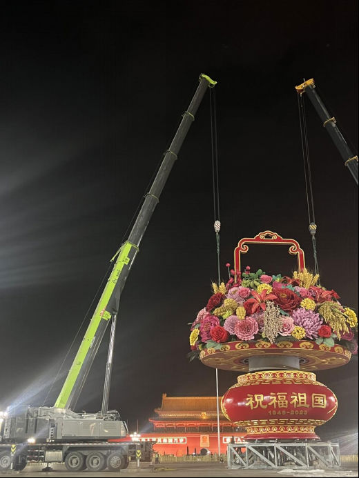 中聯(lián)重科起重機(jī)吊裝天安門廣場(chǎng)國(guó)慶大花籃完美亮相