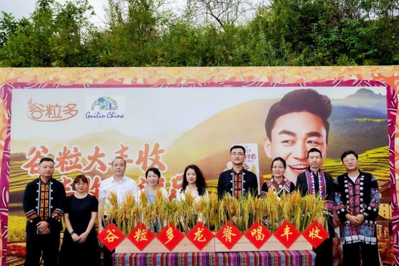 (伊利集團、桂林文旅、龍勝縣等嘉賓代表們共同開啟唱豐收儀式)