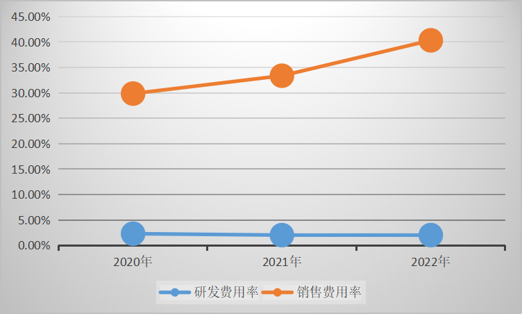2021年以來,湯臣倍健的銷售費用同比增速保持在30%左右;同時,其銷售費用占營收比重持續(xù)高于30%。悄然間,公司2020年至2022年的銷售費用就從18.18億元漲至31.69億元,遠超同期營收增速。
