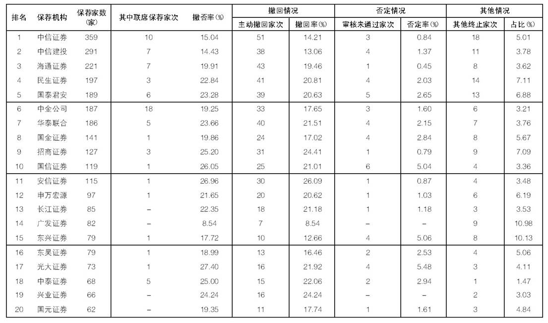 券商保薦IPO數(shù)量TOP20