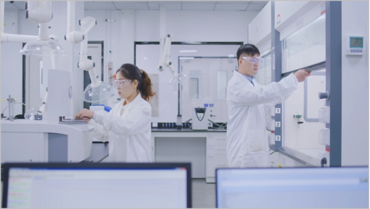 研發樓設有不同的實驗室,每個實驗室兩側都是整扇的透明玻璃,可以清晰地看見實驗室內的實驗進展情況。研發人員的工位則安排在房間兩側,不斷有研發人員穿梭于工位和實驗室之間。