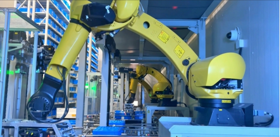 “按照容量、瓶口大小分類,我們會用到14種瓶子,這些機械手臂借助機器視覺會自動判斷該把瓶子放在周裝箱中的哪個位置。”劉志遠告訴記者,引入機器人操作后的失誤率為“零”。