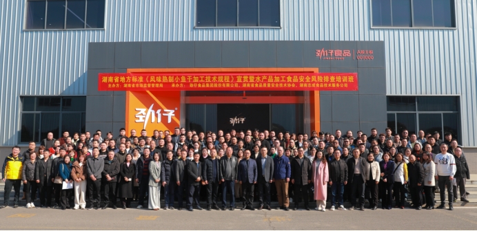 近日,湖南省地方標(biāo)準(zhǔn)《風(fēng)味熟制小魚干加工技術(shù)規(guī)程》(DB43/T 2830-2023)宣貫暨水產(chǎn)品加工食品安全風(fēng)險排查培訓(xùn)在勁仔食品魚制品智能制造基地舉行。該標(biāo)準(zhǔn)是全國首個小魚零食地方標(biāo)準(zhǔn),將于今年2月9日實施。