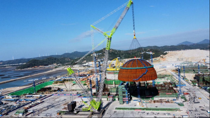 △中聯(lián)重科ZCC3200NP履帶式起重機(jī)進(jìn)行漳州核電穹頂?shù)跹b