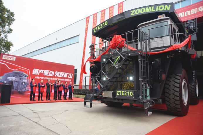 1月21日,由中聯(lián)重科自主研制的首臺百噸級全國產(chǎn)化電傳動(dòng)礦用自卸車ZTE210在湖南長沙榮耀下線,標(biāo)志著中聯(lián)重科正式挺進(jìn)高端礦業(yè)裝備市場。這是礦山國產(chǎn)重大技術(shù)裝備的又一歷史性突破,徹底改寫了我國百噸級電傳動(dòng)自卸車核心部件長期依賴進(jìn)口的局面。